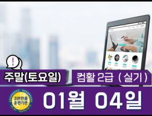 | 과정명 | 컴퓨터활용능력 2급(실기) 자격증   09:00~12:00 (토요일, 오전) [진행중] |