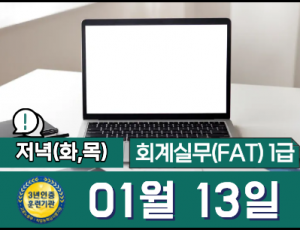 | 과정명 | 전산회계실무(FAT) 1급 자격증       18:50~21:40 (화,목) 저녁 [진행중] |