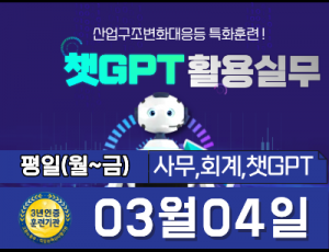 챗GPT를 활용한 사무원 양성과정 09:00~15:20 (월~금) [모집중] |