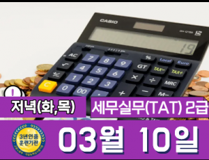 전산세무실무(TAT) 2급 자격증       18:50~21:40 (화,목) 저녁 [모집중] |