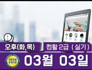 | 과정명 | 컴퓨터활용능력 2급(실기)   16:30~18:00 (화,목) 오후 [종료] |