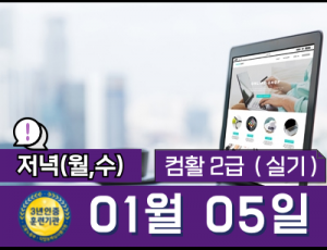 컴퓨터활용능력 2급(실기) 자격증   18:50~21:40 (월,수) 저녁