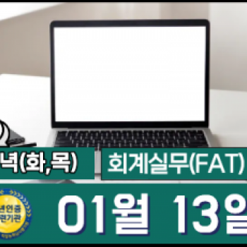 국민내일배움카드(평일저녁) > 사무자동화(OA) 전산회계실무(FAT) 1급 자격증       18:50~21:40 (화,목) 저녁 수강신청 |