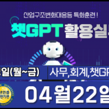 산업구조변화대응 특화훈련 > 전산세무회계(AT) 챗GPT를 활용한 사무원 양성과정 09:00~15:20 (월~금) 수강신청 |